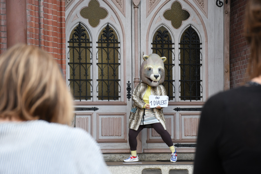 Bären werden kaum älter als 30 Jahre und können sich an die deutsche Teilung genauso wenig erinnern wie Millennials – so auch hannsjana. Also schlüpfen die Künstlerinnen in ihre Bärenkostüme und gehen den Vorurteilen und Privilegien auf den Grund, die in ihre west- bzw. ostdeutsche Sozialisation eingesickert sind. Sie wandern mit dem Publikum entlang der ehemals geteilten Brunnenstraße und suchen in einem performativen Audiowalk nach Spuren von Zugehörigkeiten, die gar nicht mehr so genau zu lokalisieren sind: Massiv veränderte Stadtbilder zeugen von den realen und ideologischen Planierraupen, mit denen alte Ideale mit aktuell geltenden Werten überschrieben wurden. Während die Zuschauer_innen über Kopfhörer den Erzählungen von critical westness und Ostwut lauschen, gibt es 30 Jahre nach dem Mauerfall noch einmal eine überraschende Wende.