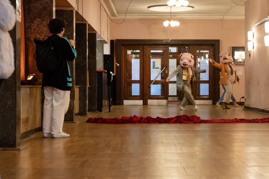 Im Audiowalk trifft das Publikum von heute auf akustische Erinnerungen an das Theater Karlshorst und lauscht Anekdoten von bewegenden Erlebnissen in anderen Theatern. Dabei drängt sich wiederholt eine Rotte Rampensäue in den Vordergrund. Diese spielwütige und theateraffine Schweineart hat einen perfekten Lebensraum im leerstehenden Theater gefunden. Dort bringen die Rampensäue ungestört tagein tagaus eigene und fremde Theatererinnerungen zur Aufführung: Staatsballett trifft auf Jugendweihe, Musical auf avantgardistische Performancekunst.