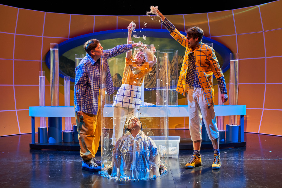 Mitten in den Wolken, gleich beim sprechenden Baum, lebt Frau Holle. Sie bringt den Kindern bei, dass Fleiss immer belohnt wird und Faulheit sich nie auszahlt. Und, dass es in der Welt schneit, sobald sie ihre Kissen ausschüttelt … Doch wie die meisten Kinder gehorcht auch das Wetter nicht immer aufs Wort. Denn obschon die Weihnachtszeit naht, funktioniert die Zauberei mit dem Kissen nicht so selbstverständlich: Der Winter – und damit der Schnee – ist spurlos von der Erde verschwunden. Also gilt es, den Schnee zurück zu holen! Dafür haben die Künstlerinnen auf der Bühne ein Wetterlabor eingerichtet, in dem zu beobachten ist, wie Gletscher schmelzen, wie sich Schneeflocken bilden oder woher der Wind weht. So entsteht mit der Geschichte von Frau Holle eine komisch-schräge Bühnenshow mit viel Witz und Musik über Themen wie Wetter, Klima und Verantwortung, die nicht nur die Zukunft der Kinder und Erwachsenen betrifft, sondern auch die Tiere: Ohne ihren Winterschlaf drehen die Murmeltiere bald durch.