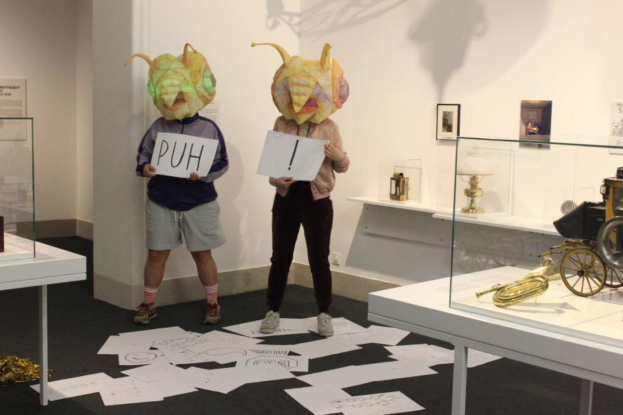 Käfern auf der Spur, die ihre Unterleibe erstrahlen lassen, wird das Publikum auf eine Nachtwanderung durch das Museum für Kommunikation geschickt.
