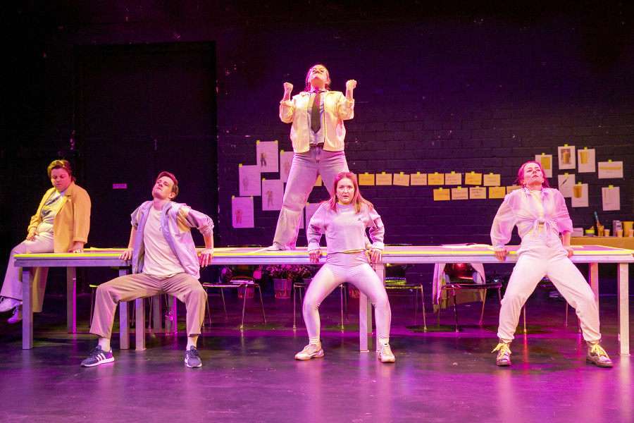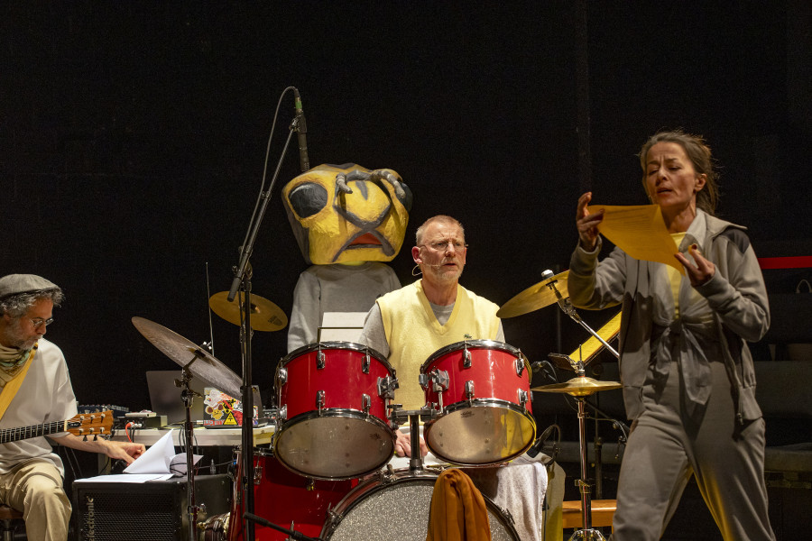Glücklicherweise aber hat das Grips die Regie des Abends in die Hände des für Witz und Originalität bekannten Performerinnen-Kollektivs hannsjana gelegt, das einen schönen Twist erfindet: Die gesamte Jubiläumsfeier ist konsequent als Generalprobe aufgezogen – für eine Gala, die erst noch stattfindet.