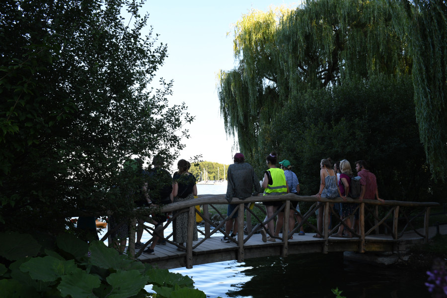 hannsjana nimmt das Publikum mit auf einen Hörspiel- Spaziergang zum Ufer des Schweriner Sees. In der interaktiven Aufführung kämpft eine Gruppe Wale gegen deutsche Bürokratie und das Publikum stellt sich der Frage welche Wahl es treffen würde, wenn es plötzlich Wale hätte. Nebenbei werden die Teilnehmer*innen im Whalewatching ausgebildet und können mit etwas Glück einen echten Schweriner Wal beobachten.